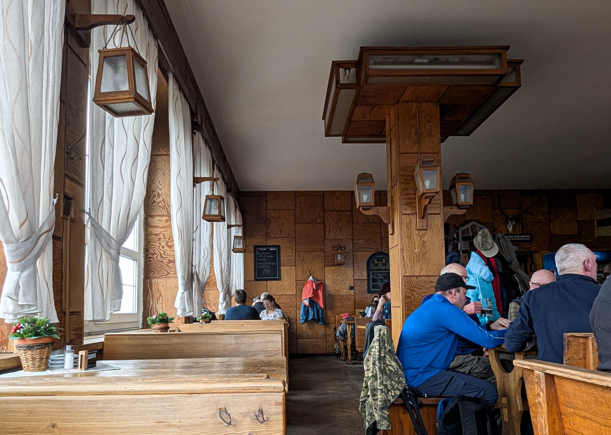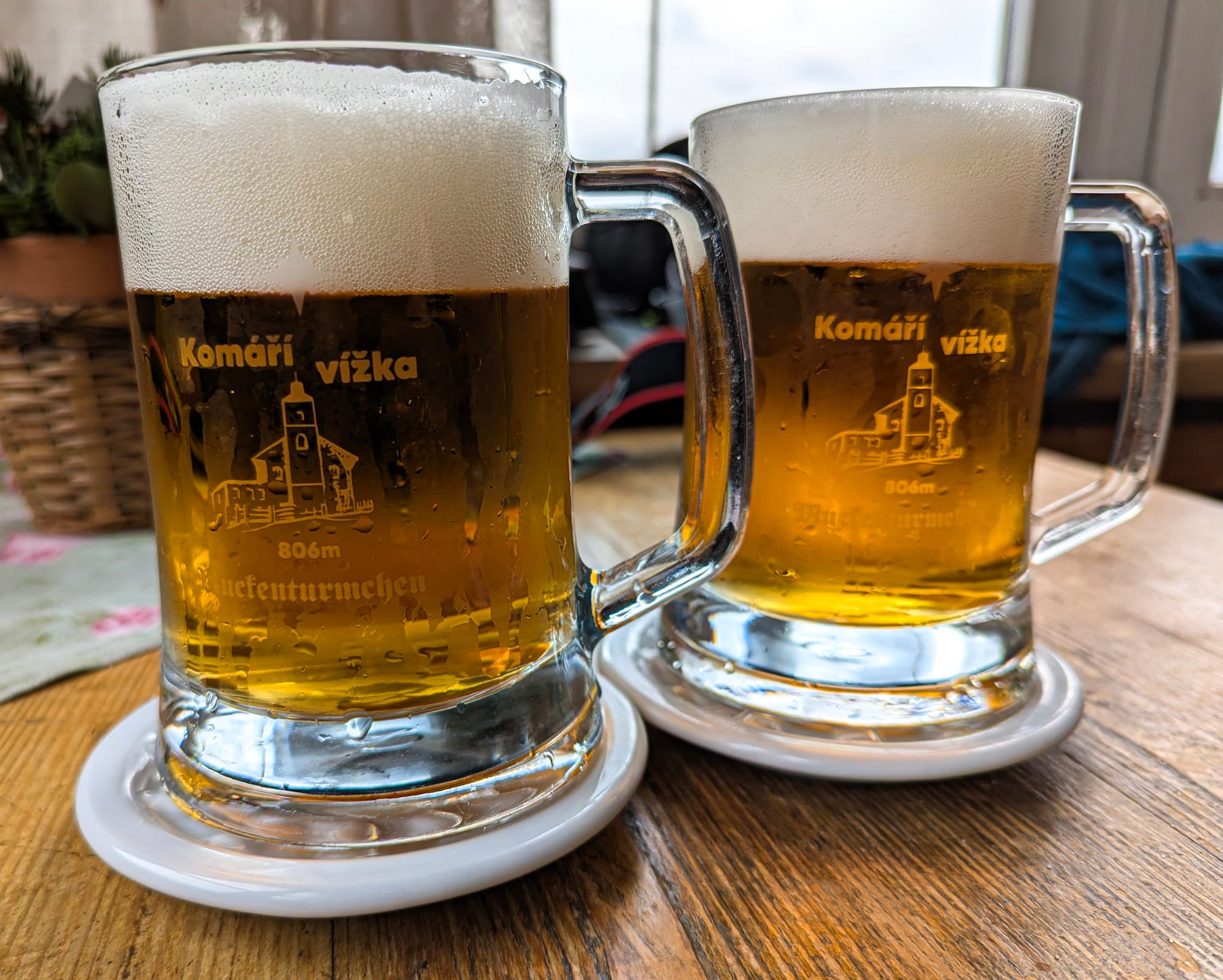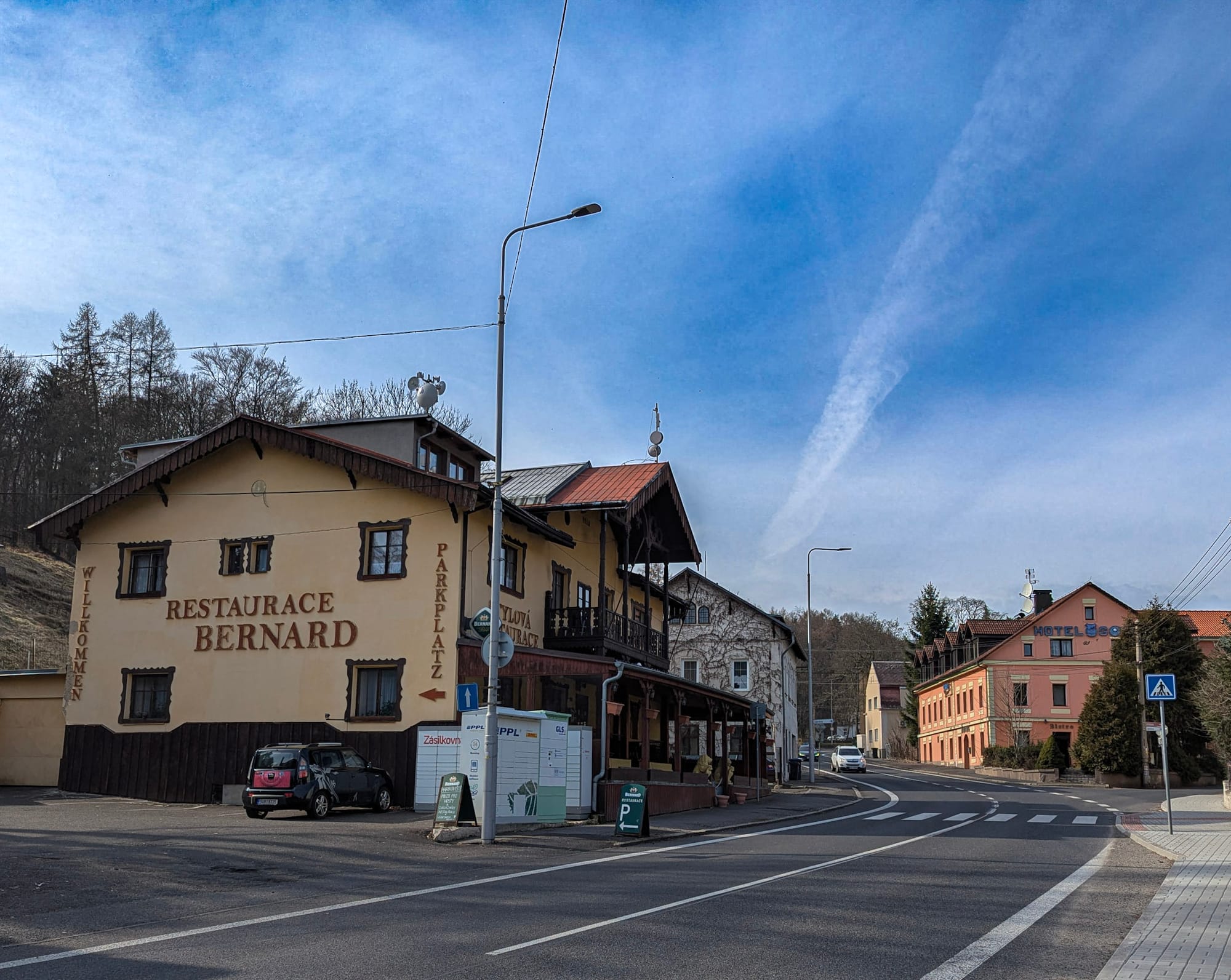 Schon im 16.Jahrhundert gab es hier einen Turm, dessen Glocke die Zinnbergleute der umliegenden Orte zur Schicht rief. Heute erwarten dich ein riesiger Gastraum im besten 80er-Jahre-Style, Hotelzimmer, rasch servierte tschechische Hausmannskost und natürlich ein toller Blick auf die Landschaft drumherum. Bei einigermaßen guter Sicht kannst du nicht nur die Sächsische Schweiz und das Dresdner Elbtal sehen, sondern auch den Jeschken mit seinem Hotel!