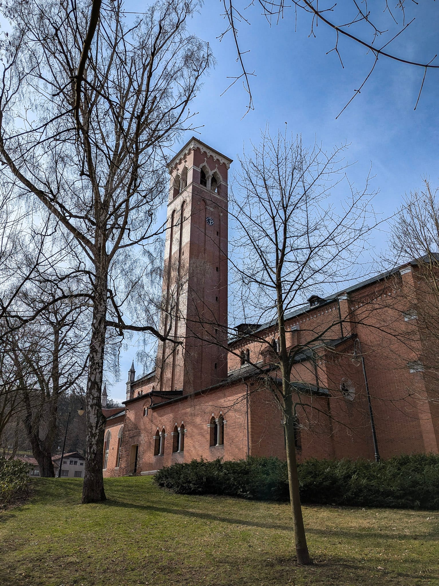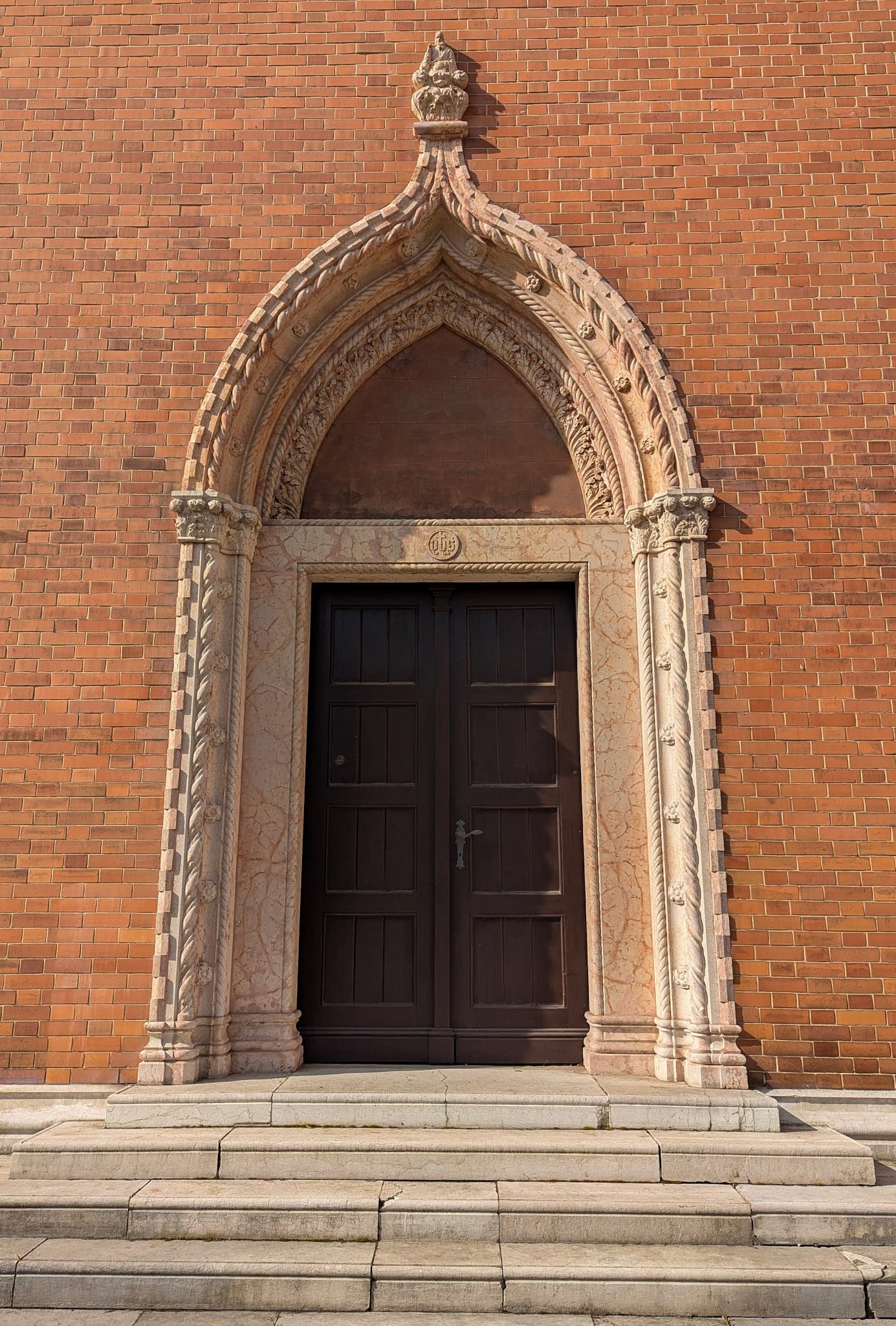 Das nördlichste Gebäude venezianischer Architektur in ganz Europa entstand zwischen 1898 und 1906 und bringt etwas Pompöses und gleichzeitig Graziles in den kleinen Ort. Geld kam durch öffentliche Spenden und vom böhmischen Fürstenhaus Clary und Aldringen - und die stammten ursprünglich aus Italien. Inspiration für den Bau: die Kirche Madonna dell`Orto in Venedig.