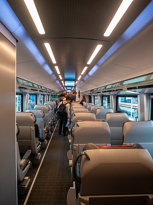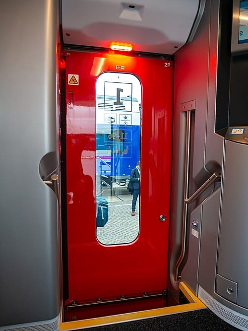 Ansprechendes Design, eine Sitzreihe mit nur jeweils einem Platz und Handläufe an den Türen, die ein besseres Einsteigen ermöglichen: Im ComfortJet lässt es sich gut reisen. (Fotos: Matti Blume, veröffentl. unter Creative Commons License CC BY-SA 4.0).