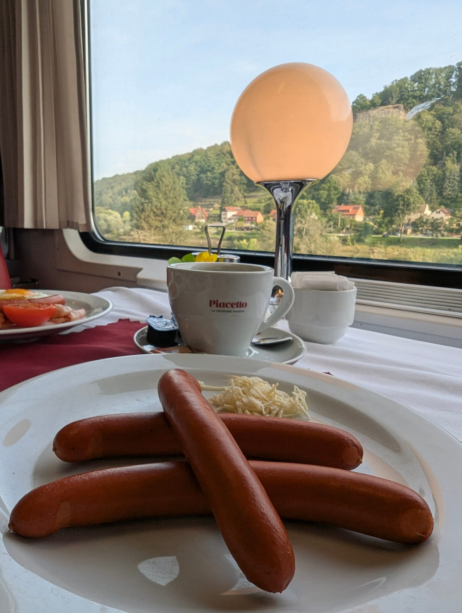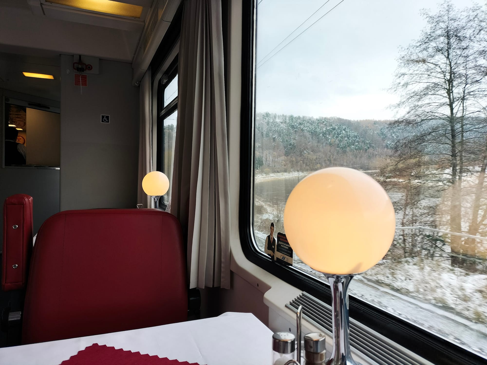 An einem Dezembermorgen 2024 füllt sich auf dem Hbf Leipzig langsam der Speisewagen mit Hungrigen - und ist schon kurz nach Abfahrt gut besetzt. Wiener mit Meerrettich: Warum gibt es das noch nicht auf deutschen Speisekarten? Am schönsten auf dem Weg nach Prag sind die Fahrten durchs Elbtal, egal ob im Sommer oder Winter.