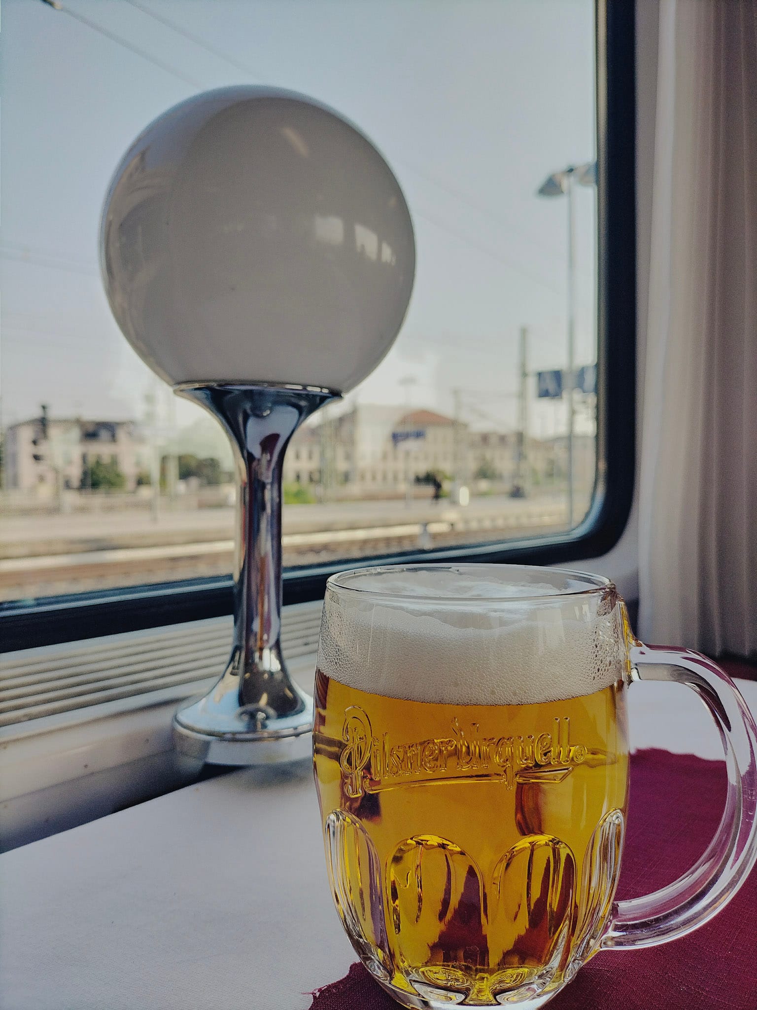 Bier wird weiterhin frisch gezapft, und der Speisewagen im ComfortJet ist für mindestens zwei Sorten Hopfenblütentee aus dem Fass ausgelegt. "A specific Czech request", wie die RailwayGazette in ihrer Vorstellung des ComfortJet schreibt 😄.