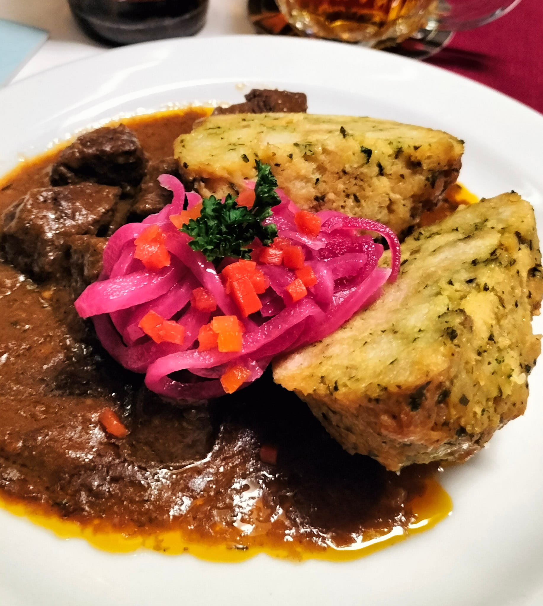 Svíčková, der Lendenbraten mit Knödeln und der cremig-leicht süßen Soße, der wird wohl auf ewig eines der am meisten verlangten Gerichte im Restaurantwagen bleiben! Das derzeitige Saison-Menü hat aber auch einen Klassiker wieder im Programm: Dillsauce mit Eiern und ofengebackenen Babykartoffeln. Nach eigenem Probieren kann ich dir das wärmstens empfehlen!