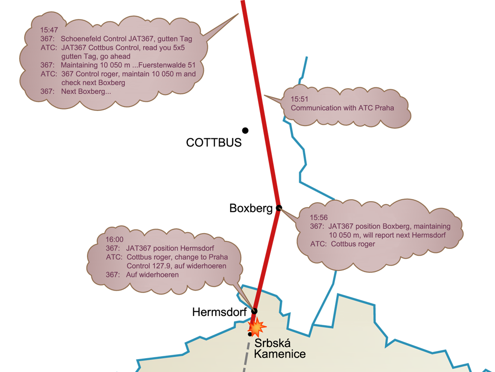 Die Crew von Flug JAT367 hatte am 26. Januar 1972 nachmittags über dem DDR-Territorium noch Funkkontakt mit dem zuständigen Tower in Cottbus. Nur wenige Minuten später aber brach die Maschine - wie damals berichtet wurde - in über 10.000 Metern Höhe auseinander.