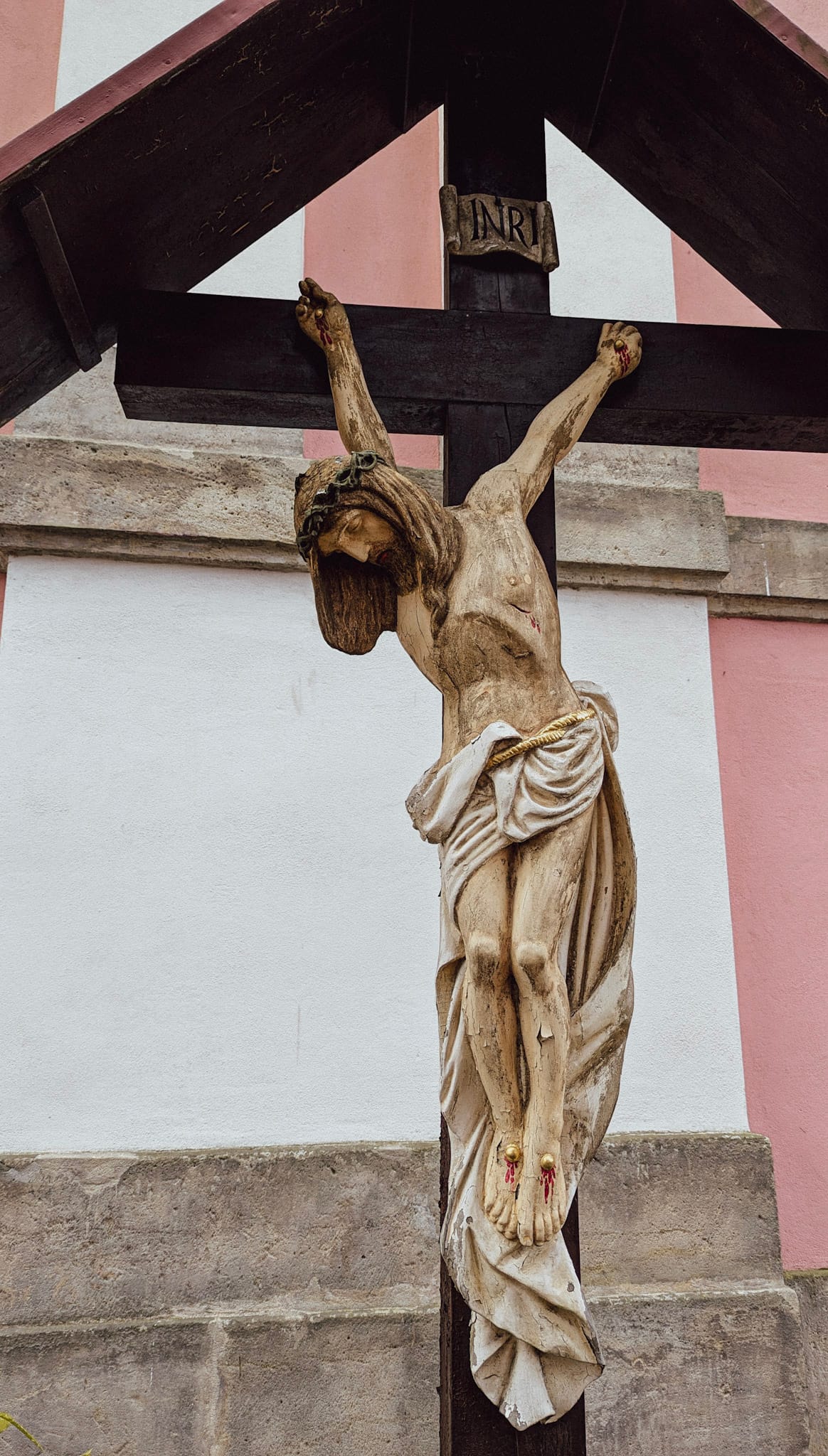 Auf derselben Straßenseite grüßt wenige Meter weiter vom Hügel herab der Turm der Kirche St. Wenzel. Spätbarock, erbaut 1773 bis 1776, und das Aushängeschild des Ortes. In den 1990ern wurde sie restauriert, mit Geldern aus Tschechien und Deutschland.